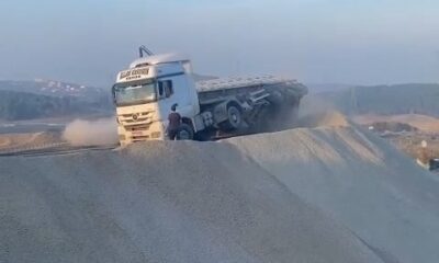 Sultangazi’de hafriyat kamyonunun damperinin devrilmesi kameraya yansıdı. Sürücü damperin altında kalmaktan saniyelerle kurtuldu. Olay Cebeci Mahallesi Taş Ocakları mevkiinde meydana geldi. Bir hafriyat kamyonu mıcırları boşaltıyordu....
