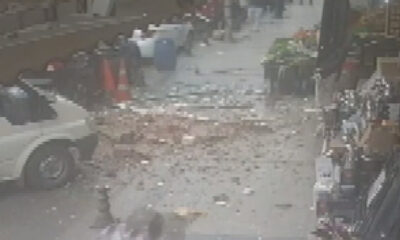 BAĞCILAR’da iş merkezinin içinde bulunan tekstil atölyesinde patlama meydana geldi. Patlama anı güvenlik kamerasına yansırken kaldırımda yürüyenlerin son anda düşen cam ve tuğla parçalarının altında kalmaktan...