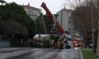 BAKIRKÖY’de sabah erken saatlerde sürücüsünün direksiyon hakimiyetini kaybettiği yakıt dolu tanker, yoldan çıkarak devrildi. Tanker saatler süren çalışmaların ardından kaldırıldı. Trafiğe kapatılan yollar açıldı. Kaza, Ataköy...