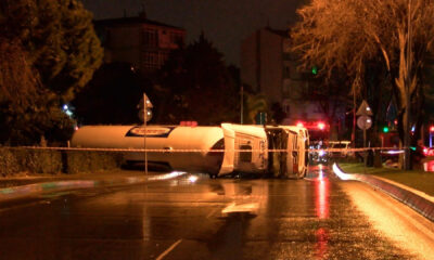 BAKIRKÖY’de sabah saatlerinde sürücüsünün direksiyon hakimiyetini kaybettiği yakıt tankeri devrildi. Tankerin sürücüsü hafif şekilde yaralanırken, cadde güvenlik amacıyla çift yönlü trafiğe kapatıldı. Kaza, Ataköy 3. Kısım...