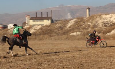 ERZİNCAN, atlı ciritçiler ile motosikletliler arasında düzenlenen cirit mücadelesi ilgi gördü. Erzincan’da motokros sporu ile uğraşan motosiklet sürücüleri ile cirit sporcuları cirit sahasında karşı karşıya geldi....
