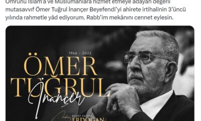 Cumhurbaşkanı Erdoğan, sosyal medya hesabında yayımladığı mesajında, “Ömrünü İslam’a ve Müslümanlara hizmet etmeye adayan değerli mutasavvıf Ömer Tuğrul İnançer Beyefendiyi ahirete irtihalinin 3üncü yılında rahmetle yad...