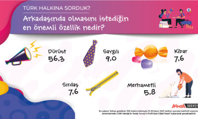 Araştırma şirketi Areda Survey, arkadaşlık ilişkilerine dair çalışmasını yayımladı. Araştırmanın sonucuna göre, Türk halkının yüzde 56,3’ü arkadaşının dürüst olmasını istiyor. Araştırma şirketi Areda Survey, 23-29 Kasım tarihlerinde bin 100...