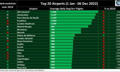 İstanbul Havalimanı, Avrupa Hava Seyrüsefer Emniyet Teşkilatı’nın (EUROCONTROL) 1 Ocak- 6 Aralık tarihlerini kapsayan istatistiklerinde, günlük ortalama bin 206 uçuşla, Avrupa’daki havalimanları arasında liderliğini korudu. Yılın...