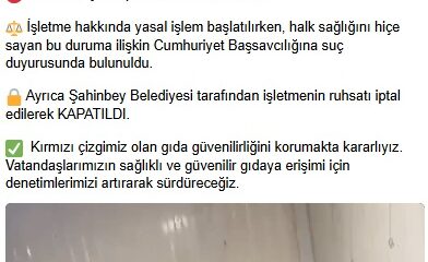 Bakanlıktan konuya ilişkin yapılan açıklamada, “Güvenilir gıdadan taviz yok. Gaziantep Şahinbey’de, Gıda Kontrol Görevlilerimiz ve Şahinbey Belediyesinin yaptığı denetim sonucunda; Kıyma makinelerine gizlenmiş bir düzenekle, tavuk...