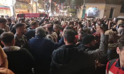 Dünya Kupası’nda Portekiz’i 1-0 yenerek yarı finale yükselen Fas, taraftarlarına büyük sevinç yaşattı. Faslılar, takımlarının yarı finale yükselmesini Taksim Meydanı’nda tezahüratta bulunarak kutladı. Faslılar, polisin yönlendirmesi...