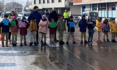ARDAHAN’ın Göle ilçesinde ilkokul öğrencileri, kış aylarının gelmesiyle artan trafik kazalarına farkındalık için öğretmenleri ile ‘sessiz çığlık’ eylemi düzenledi. Trafik polislerinin kontrolünde 5’er dakika yol kesen öğrenci...
