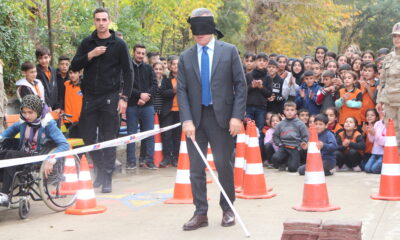 ŞIRNAK İl Jandarma Komutanlığı tarafından ‘Biz engelleri görüyor, engellileri anlıyoruz’ sloganıyla Vali Aydın Arslan İmam Hatip Ortaokulu’nda ‘Empati Parkuru’ kuruldu. Etkinliğe katılan Vali Osman Bilgin ile öğrenciler gözlerini bandajla...