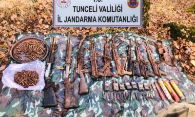 TUNCELİ’de ‘Eren Abluka Sonbahar Kış- 4 Şehit Uzman Çavuş Burak Tortumlu Operasyonu kapsamında yapılan arazi taramasında teröristlerin kullandığı tespit edilen sığınakta silah, mühimmat ve yaşam malzemeleri ele...