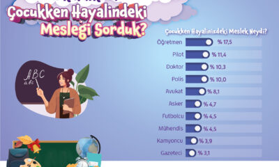 Areda Survey’in 1100 kişinin katılımıyla gerçekleştirdiği ‘çocukluk hayalimizdeki meslek’ araştırmasına göre, Türk halkının yüzde 17,5’i çocukluğundaki meslek hayalinin öğretmenlik olduğunu belirtti. Hayal edilen diğer meslekler ise...