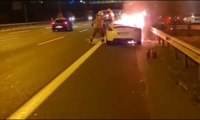 ÜMRANİYE, TEM Otoyolu’nda seyir halindeki otomobil, motor kısmından alev alarak yanmaya başladı. Yoldan geçen sürücülerin yangın tüpü ile yaptığı müdahale başarılı olamayınca itfaiyenin gelmesi beklendi. Olay...