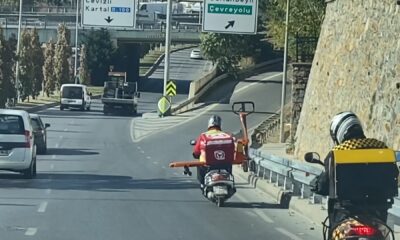 KARTAL’da motosikletiyle transpalet taşıyan kurye hem trafiği hem de kendi canını tehlikeye attı. Kırmızı ışıkta da geçen motokuryenin tehlikeli yolculuğu kameraya yansıdı. Uğur Mumcu Mahallesi, Şehit...