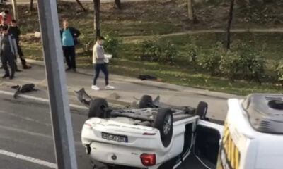ESENLER’de Mehmet Türkel isimli sürücü otomobiliyle son anda sapağa girmek için direksiyon kırınca bir araca çarparak takla attı. Sürücü çevredekilerin yardımıyla araçtan çıkarıldı. O anlar kameraya...
