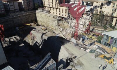 KÜÇÜKÇEKMECE’de Arel Üniversitesi’nin binasının çökmesi sonrası yan tarafta bulunan inşaat alanında dolgu işlemleri yapılıyor. Küçükçekmece’de bir inşaatın istinat duvarının çökmesi nedeniyle tedbir amacıyla boşaltılan yan taraftaki 3...