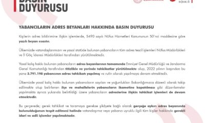 Göç İdaresi Başkanlığı, yabancıların gerçek dışı olarak ikamet adreslerine yerleştirilmesi iddiaları hakkında, “Yasal kalış hakkı bulunan yabancıların adres beyanlarının tamamında, Emniyet Genel Müdürlüğü ve Jandarma Genel...