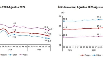 TÜRKİYE İstatistik Kurumu (TÜİK), ağustos ayına ilişkin iş gücü istatistiklerini açıkladı. İşsizlik oranı, 0,4 puanlık azalışla yüzde 9,6 seviyesinde gerçekleşti. İstihdam oranı ise 0,5 puanlık artışla...