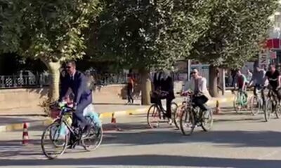 IĞDIR’da, bisiklet turunda tanışan öğretmenler Aslı Bağca (30) ve Yunus Sönmez (32), nikahlarına da bisiklet konvoyuyla gitti. Bir ömür beraberlik için ‘evet’ diyen çift, salondan yine bisikletleriyle ayrıldı....
