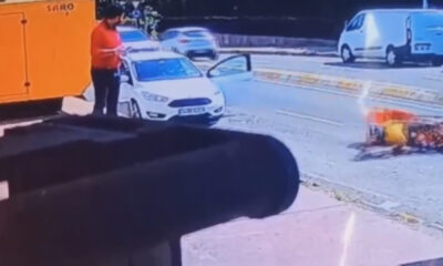 PENDİK’te sürücüsünün kapısını açtığı park halindeki otomobile çarpan motokurye savrularak yere düştü. Kurye başka bir otomobilin altında kalmaktan da son anda kurtuldu. O anlar bir iş...