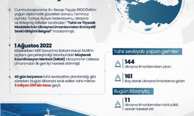 MİLLİ Savunma Bakanlığı (MSB), 1 Ağustos’tan itibaren Ukrayna limanlarından taşınan tahıl miktarının 3 milyon 250 bin tonu geçtiğini açıkladı. Bakanlıktan yapılan açıklamada, “Cumhurbaşkanımız Sayın Recep Tayyip Erdoğan’ın...