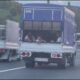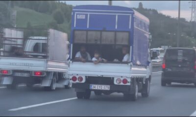 TEM Otoyolu Edirne istikametinde 3 ayrı kamyonetin kasasında yolculuk yapanların görüntüsü cep telefonu kamerasına yansıdı. Kamyonetin arkasında çocukların da olduğu görüldü. TEM Otoyolu Edirne istikametine giden...