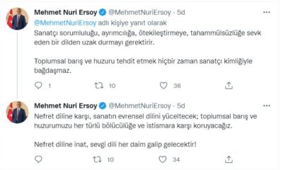 KÜLTÜR ve Turizm Bakanı Mehmet Nuri Ersoy, şarkıcı Gülşen’in imam hatiplilere yönelik sözleriyle ilgili, “Toplumsal barış ve huzuru tehdit etmek hiçbir zaman sanatçı kimliğiyle bağdaşmaz” dedi....