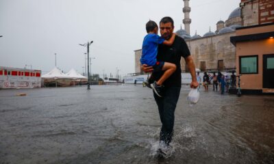 İstanbul’da sabah saatlerinden itibaren yağış etkili oldu. Anadolu Yakası’nda cadde ve işyerleri sular altında kalırken bir çöp konteynerinin sokaktaki yağmur sularıyla birlikte ilerlediği görüldü. İstanbul Anadolu...