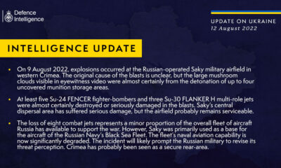 İngiltere Savunma Bakanlığı tarafından yayınlanan istihbarat raporunda Kırım’da meydana gelen patlamalar ele alınarak, Rusya’nın en az 8 savaş uçağını kaybettiği ve Saky hava üssünün merkezi dağılma...