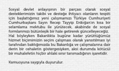 AİLE ve Sosyal Hizmetler Bakanlığı’ndan Ulusal Hane Ziyaretlerine ilişkin yapılan açıklamada, “Sosyal desteklerimizin takibi ve desteğe ihtiyacı olanların tespiti için başlatığımız yeni çalışmamızı Cumhurbaşkanı Recep Tayyip Erdoğan’ın...