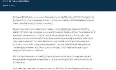 ABD Dışişleri Bakanlığı, Ukrayna topraklarının patlayıcılardan arındırılması ve insani konularda destek için 89 milyon dolarlık yardım yapılmasının planlandığını duyurdu. ABD Dışişleri Bakanlığı’ndan yapılan yazılı açıklamada, “Bakanlık,...