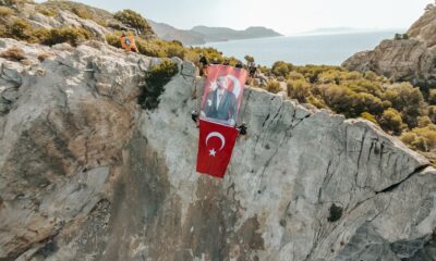 Datçada MAG-AME arama kurtarma ekiplerinden oluşan dağcılık eğitimi almış 10 kişilik ekip, Mesudiye Ovabükü mevkisinde bulunan denizden 30 metre yükseklikteki Adaburnu tepesinden Türk bayrağı ve Atatürk...