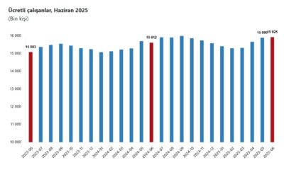 TÜİK, Haziran 2025 dönemine ilişkin ücretli çalışan istatistiklerini açıkladı. Buna göre; sanayi, inşaat ve ticaret-hizmet sektörleri toplamında ücretli çalışan sayısı bir önceki yılın aynı ayına göre...