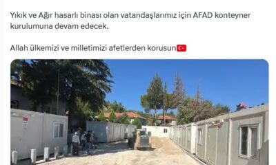 İçişleri Bakanı Ali Yerlikaya, sosyal medya hesabından yaptığı açıklamada, “Sındırgı ilçemizde depremden en çok etkilenen Alacaatlı köyündeki vatandaşlarımız için konteyner kurulumu, ekiplerimizin aralıksız çalışmalarıyla devam ediyor....