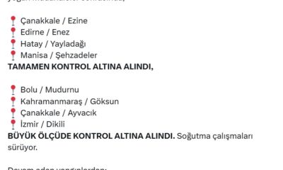 Bakan Yumaklı, sosyal medya hesabından yaptığı açıklamada, “Ülkemizin çeşitli yerlerinde meydana gelen orman yangınlarına yapılan yoğun müdahaleler sonrasında; Çanakkale Ezine, Edirne Enez, Hatay Yayladağı, Manisa Şehzadeler...