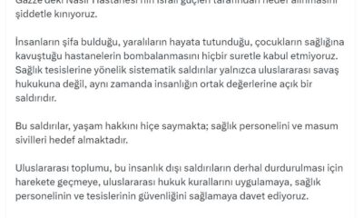 Bakan Memişoğlu: Gazze’deki Nasır Hastanesi’nin İsrail güçleri tarafından hedef alınmasını şiddetle kınıyoruz. Bu saldırılar, yaşam hakkını hiçe saymakta; sağlık personelini ve masum sivilleri hedef almaktadır.