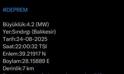 Afet ve Acil Durum Yönetimi Başkanlığı’ndan (AFAD) yapılan açıklamada, saat 21.58’de merkez üssü Balıkesir’in Sındırgı ilçesinde Riçhter ölçeğine göre 4.8 büyüklüğünde deprem meydana geldi. Yine aynı...