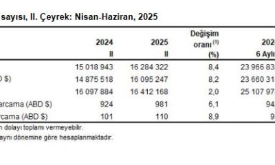 TÜİK, 2nci çeyrek turizm istatistiklerini açıkladı. Buna göre; turizm geliri nisan, mayıs ve haziran aylarından oluşan 2nci çeyrekte bir önceki yılın aynı çeyreğine göre yüzde 8,4...