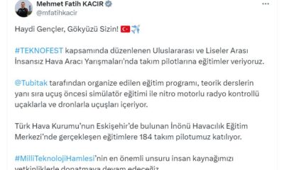 Bakan Kacır, sosyal medya hesabından yaptığı açıklamada, “TEKNOFEST kapsamında düzenlenen uluslararası ve liseler arası İnsansız Hava Aracı yarışmalarında takım pilotlarına eğitimler veriyoruz. TÜBİTAK tarafından organize edilen...