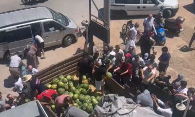 İnegöl-Alanyurt yolu üzerinde faaliyet gösteren mağaza yetkilileri, müşterilerine 12 ton ücretsiz karpuz dağıttı. Bir kamyon karpuzun ücretsiz dağıtılacağını duyanlar, mağazanın önüne akın etti. Kamyon kasasındaki karpuzlar...
