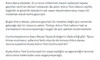 İletişim Başkanı Duran, Kıbrıs Barış Harekatının 51inci yıl dönümü ve 20 Temmuz Barış ve Özgürlük Bayramı nedeniyle sosyal medya hesabından bir mesaj yayımladı. Duran, “Kıbrıs Barış...