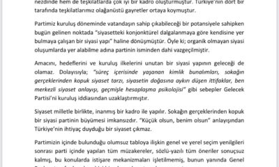 Şahin ve Temurci, sosyal medya hesaplarından paylaştıkları ortak açıklamada, “Büyük umutlarla kurduğumuz Gelecek Partisinin içinde olduğu mevcut durumun Türkiye için yeni bir gelecek tasavvuru inşa etmesi...