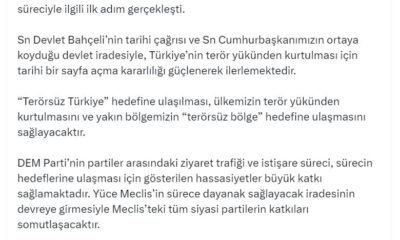 AK Parti Sözcüsü Çelik: Terörsüz Türkiye hedefi doğrultusunda PKK’nın silahları imha/teslim süreciyle ilgili ilk adım gerçekleşti. Terörsüz Türkiye hedefine ulaşılması, ülkemizin terör yükünden kurtulmasını ve yakın...