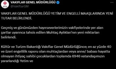 Vakıflar Genel Müdürlüğü sosyal medya hesabından, hayırseverlerin vakfiyelerinde yer alan şartlar uyarınca tahsis edilen muhtaç aylıklarının yeni miktarlarının belirlendiği duyuruldu. Açıklamada, “En az yüzde 40 ve...
