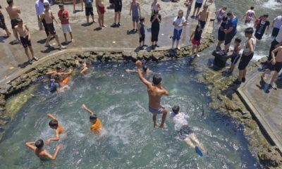 Termometrelerin 33 dereceyi gösterdiği kentte, Sur ilçesindeki tarihi Anzele Parkı’na gelen çocuklar, 1 metre derinliğindeki süs havuzunda yüzerek serinlemeye çalıştı. Suya girmenin tehlikeli ve yasak olduğuna...