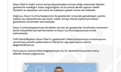 Dezenformasyonla Mücadele Merkezi sosyal medya hesabından paylaşım yaparak, Cumhurbaşkanı Recep Tayyip Erdoğan’ın yurt dışı ziyaretlerinden dönüşte uçakta gazetecilerle yaptığı görüşmelere ilişkin, CHP Genel Başkanı Özgür Özel’in...