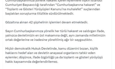 Bakan Tunç, sosyal medya hesabından yaptığı açıklamada, “Saraçhane Meydanında düzenlenen miting esnasında Sayın Cumhurbaşkanımıza yönelik hakaret içeren eylemlere ilişkin İstanbul Cumhuriyet Başsavcılığı tarafından Cumhurbaşkanına hakaret ve...