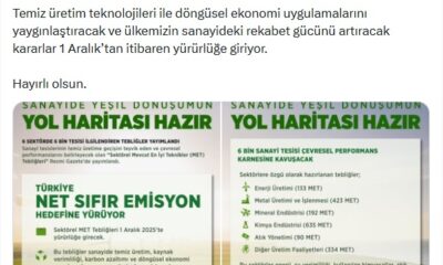 Bakanlıktan yapılan yazılı açıklamaya göre, yayımlanan tebliğlere göre, tesisler enerji verimliliği, emisyon yönetimi, atık azaltımı ve kaynak kullanımı gibi başlıklarda F’den A’ya kadar sınıflandıracak, ‘Sanayide Yeşil...