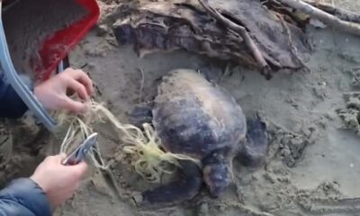 Gökçeada ilçesinde 29 Kasımda Tolga Kılıç ve arkadaşları sahilde gezdikleri sırada yerde hareketsiz haldeki caretta carettayı fark etti. Kılıç ve arkadaşları yanına gittikleri kaplumbağanın misina ile...