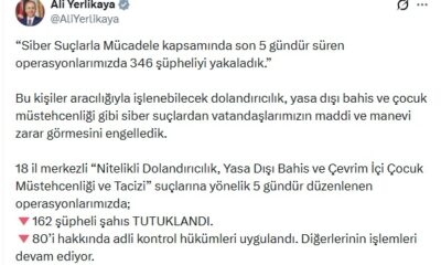 Bakan Yerlikaya, Emniyet Genel Müdürlüğü ve Mali Suçları Araştırma Kurulu (MASAK) koordinesinde düzenlenen operasyonları sosyal medya hesabından paylaştı. Buna göre; Çevrim içi çocuk müstehcenliği ve tacizi,...