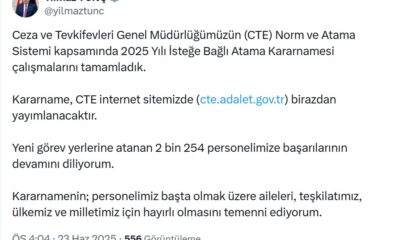 Adalet Bakanı Yılmaz Tunç, sosyal medya hesabından yaptığı açıklamada, “Ceza ve Tevkifevleri Genel Müdürlüğümüzün Norm ve Atama Sistemi kapsamında, 2025 Yılı İsteğe Bağlı Atama Kararnamesi çalışmalarını...