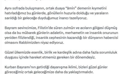 TBMM Başkanı Numan Kurtulmuş, sosyal medya hesabından paylaştığı mesajında, “Kurban Bayramı, paylaşmanın, yakınlaşmanın, bereketin ve yardımlaşmanın en güçlü manevi zamanlarından biridir. Aynı sofrada buluşmanın, ortak duaya...